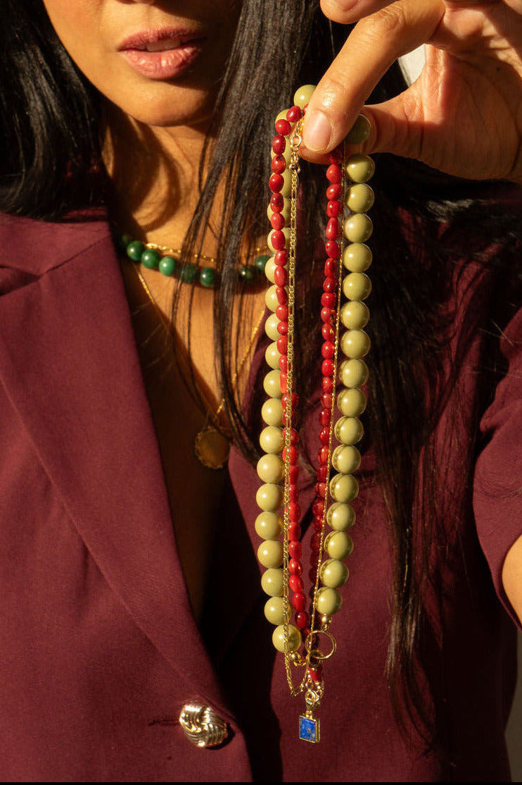 We gebruiken alleen hoogwaardige kwaliteit edelstenen en materialen met een dikke 14 karaat goudlaag; gold filled. Dit materiaal is minimaal 100x dikker dan vergulde sieraden en omdat minimaal 1/20 deel van het sieraad bestaat uit 14kt goud moet ze voorzien zijn van een keurmerk. Dit maakt jouw sieraad duurzaam, huidvriendelijk, showersafe, waardevol en evengoed betaalbaar.